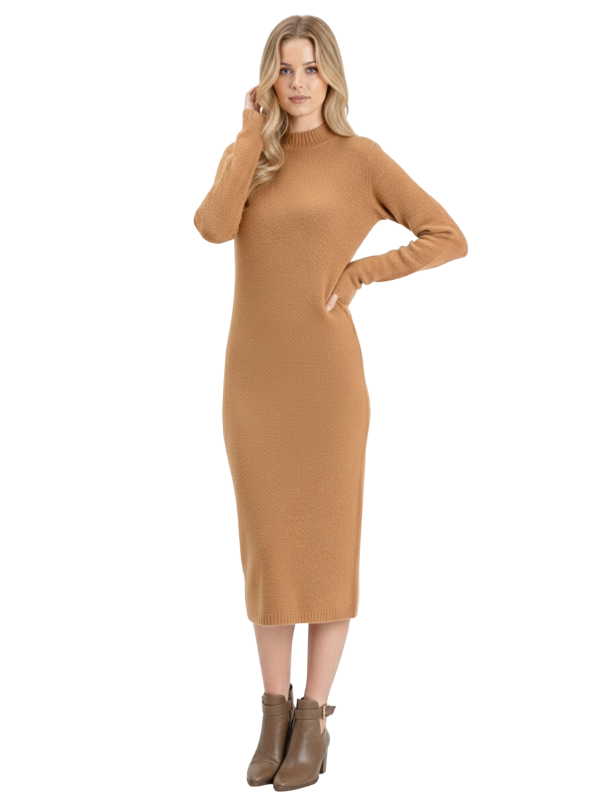 Length: 39.5"-40.5", Mock neck, Relax Fit, Long Sleeves, Midi Length, Textured Dress.