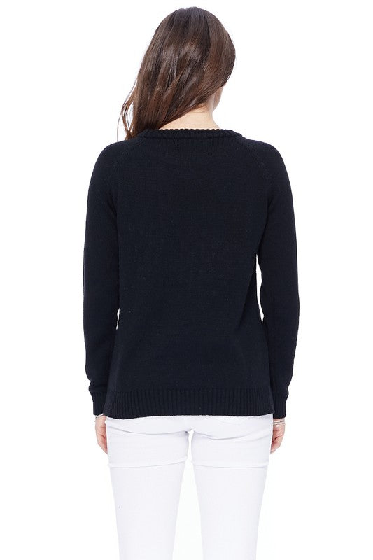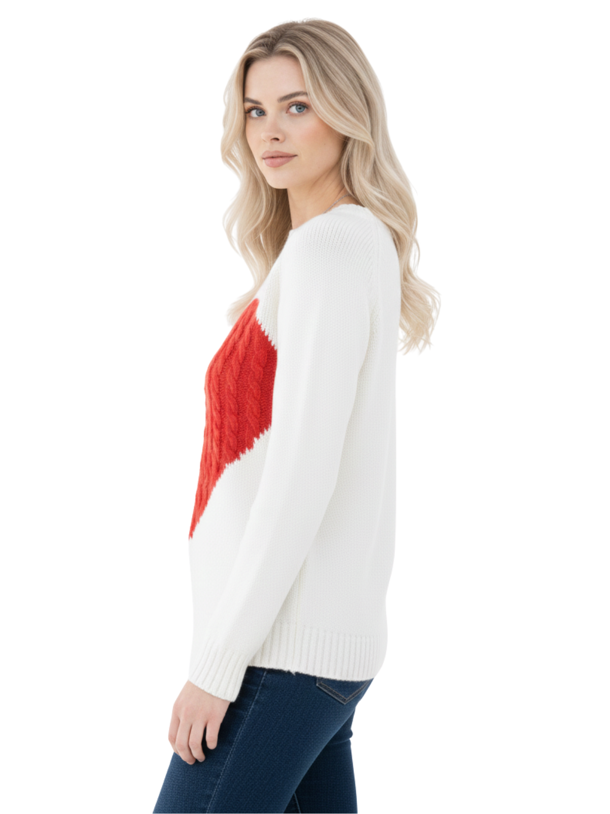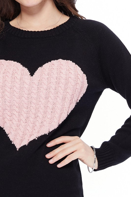 - 24"-25" Long Length, Long Sleeves, Rounded Neck, Cable Knit Heart Pullover Sweater.