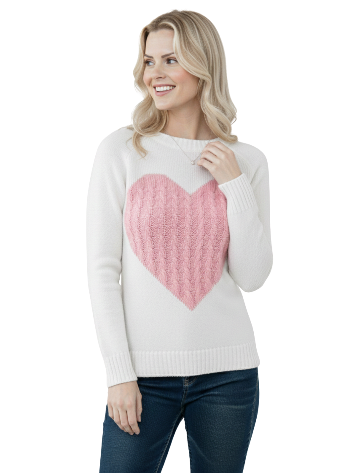 YEMAK Women's Long Sleeve Crewneck Cute Heart Cable Knit Pullover Sweater MK3506 (S-L)