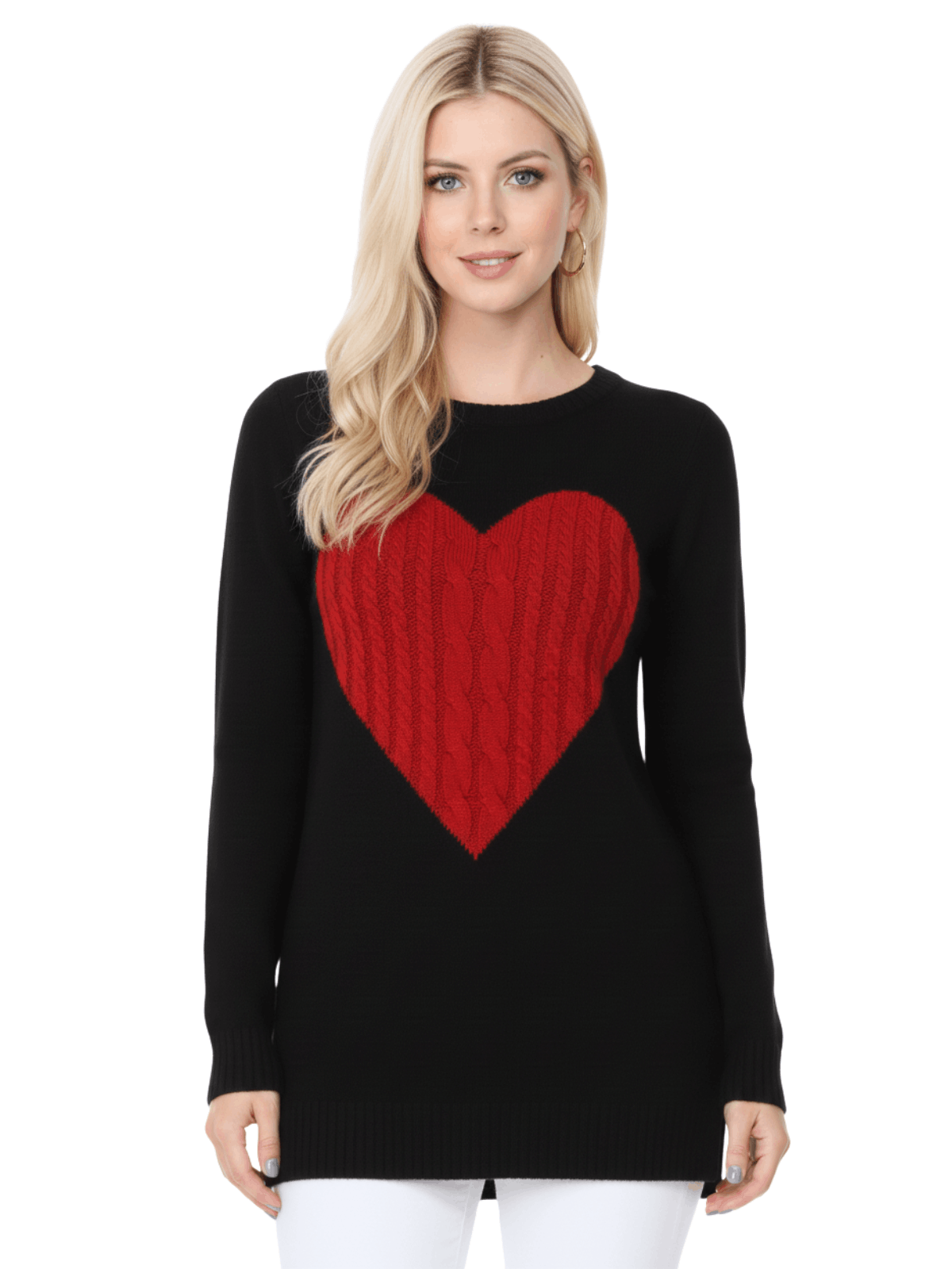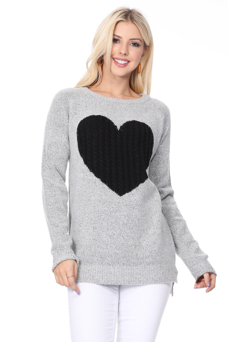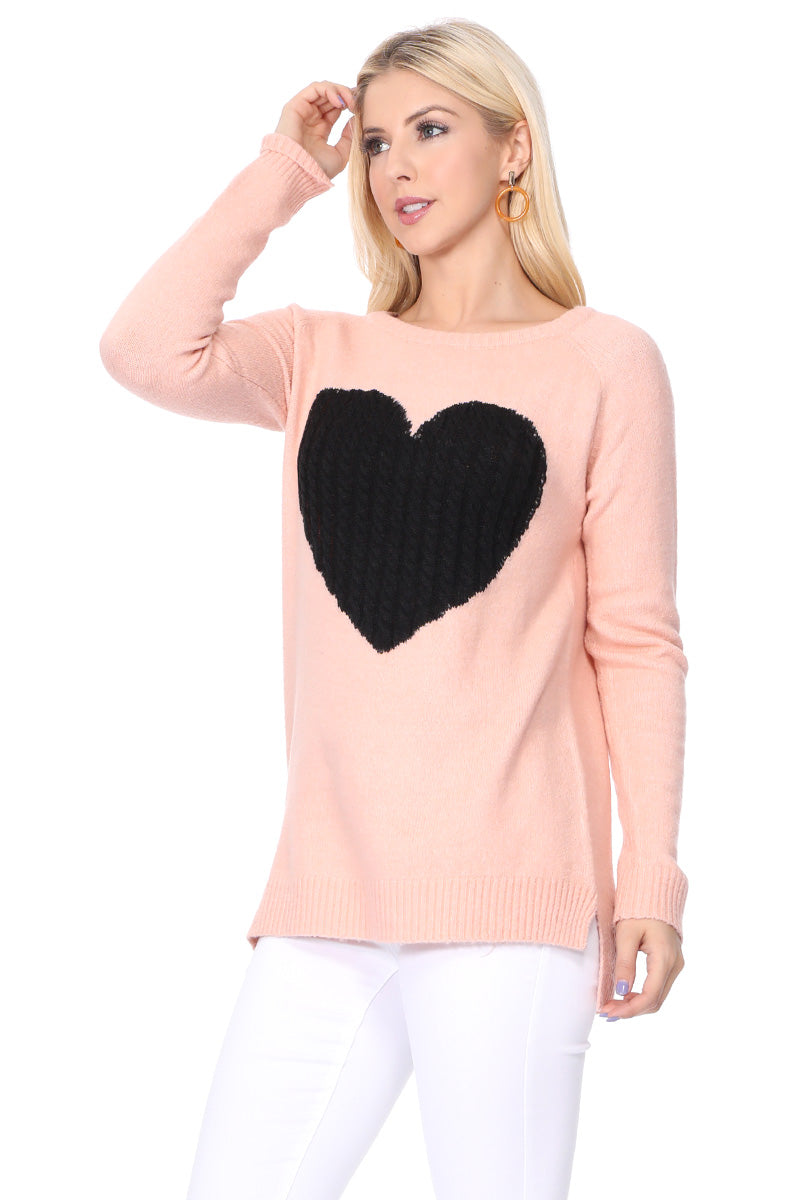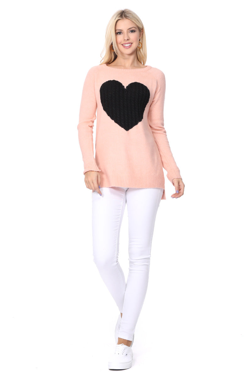 - 26" - 27" Length, Crewneck, Long Sleeve, Heart Design Knit Pullover Sweater.