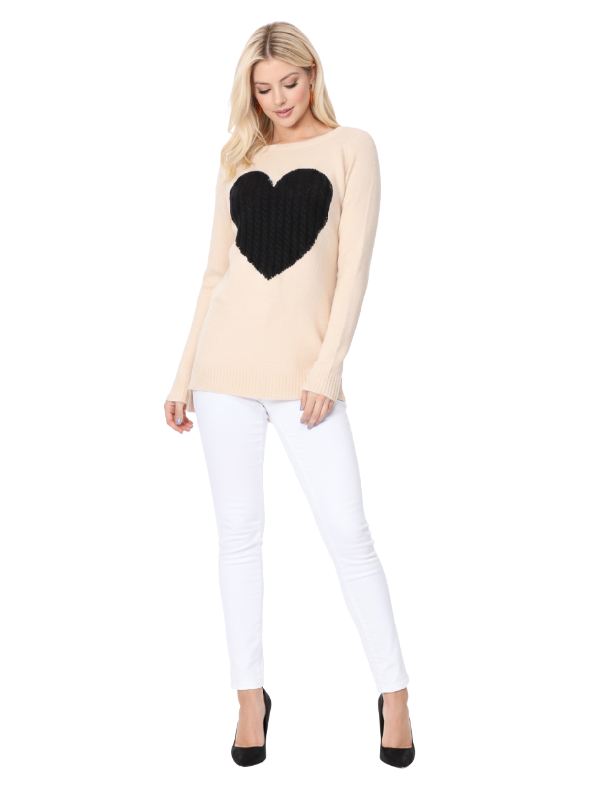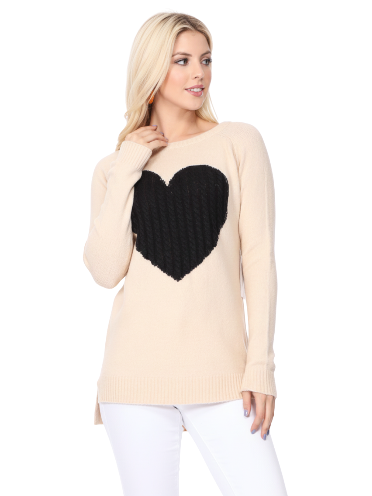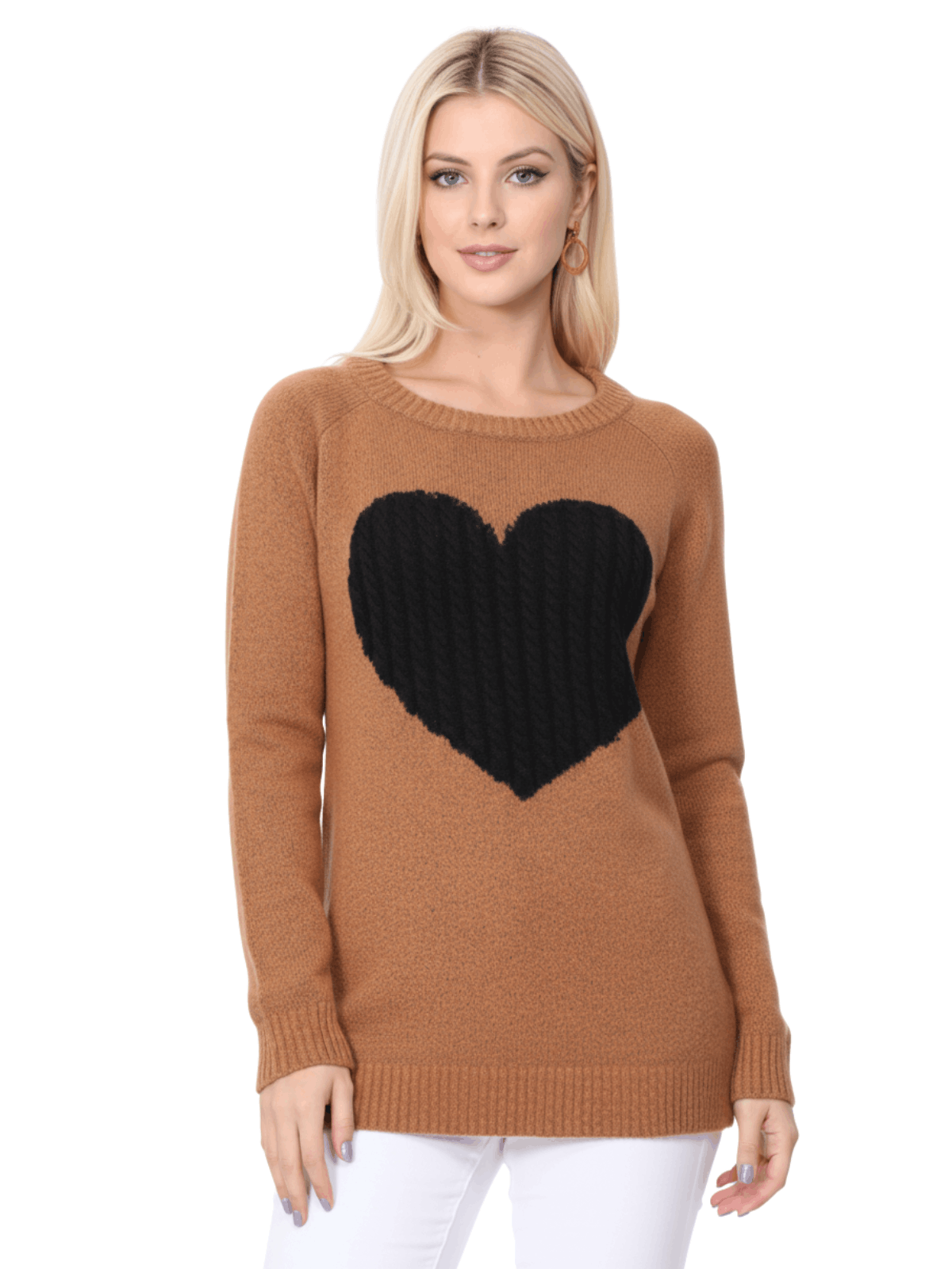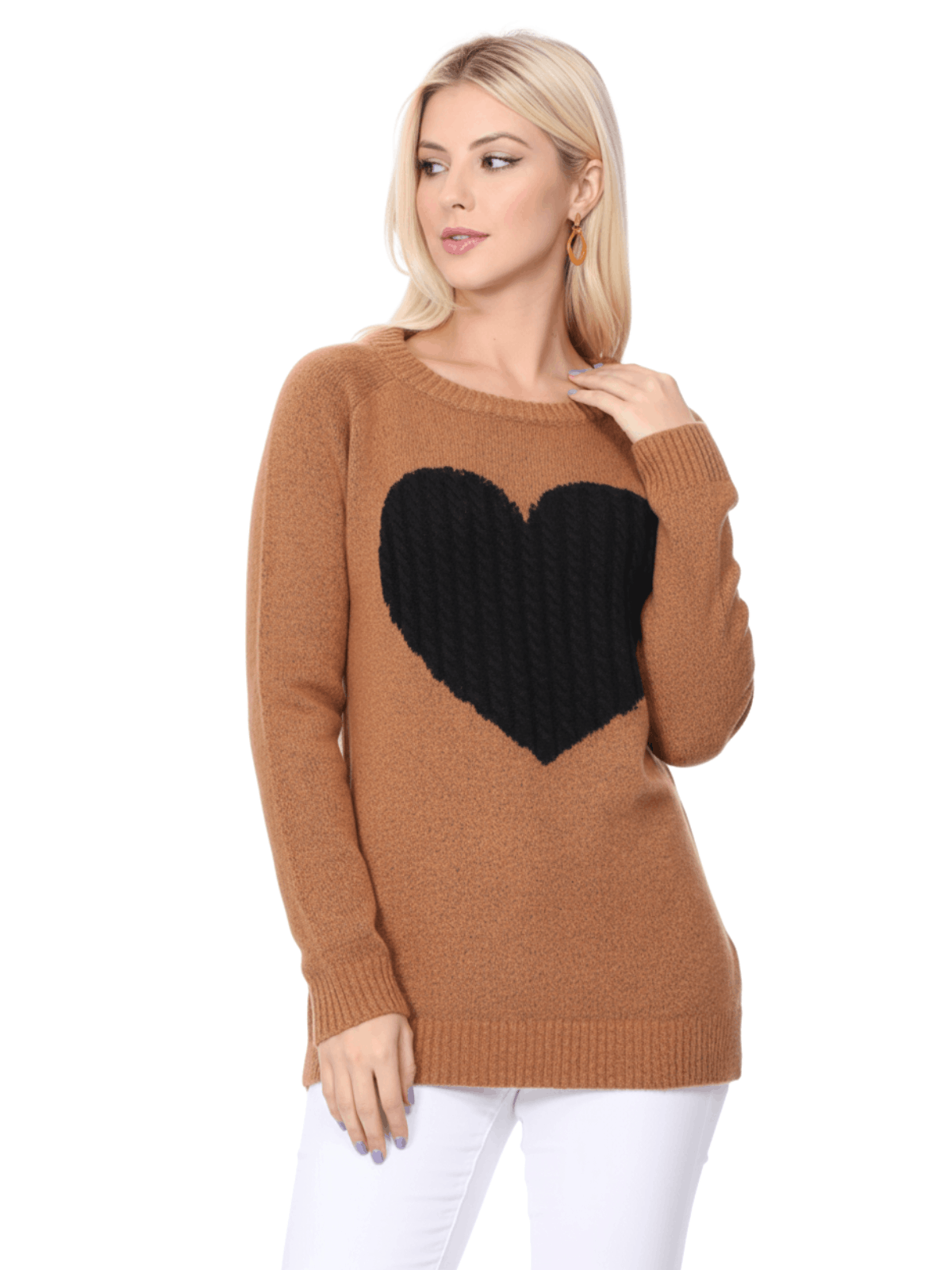 - 26" - 27" Length, Crewneck, Long Sleeve, Heart Design Knit Pullover Sweater.