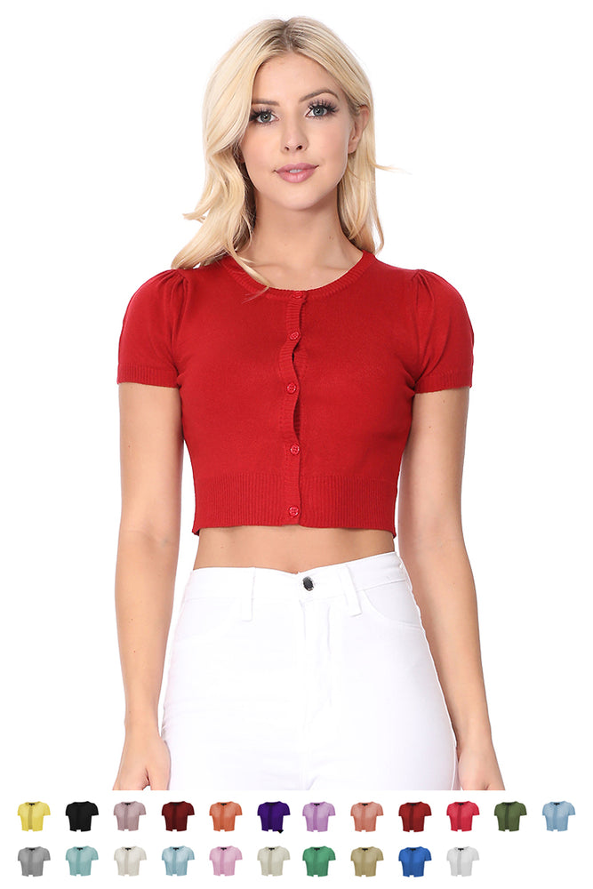 - 23"-24" Length, Short Sleeves, Ribbed Trim, Fitted Warm Knit Sweater.