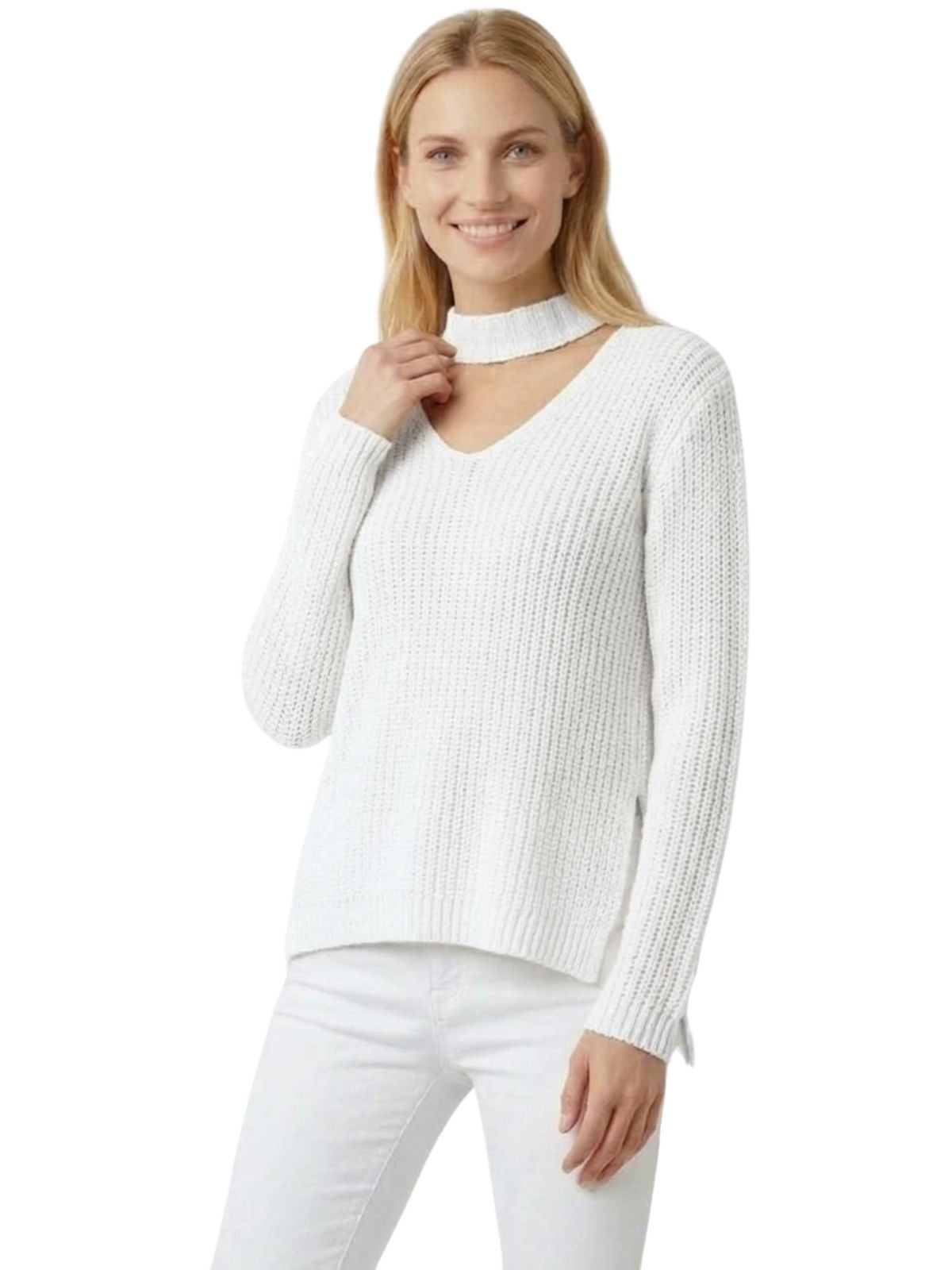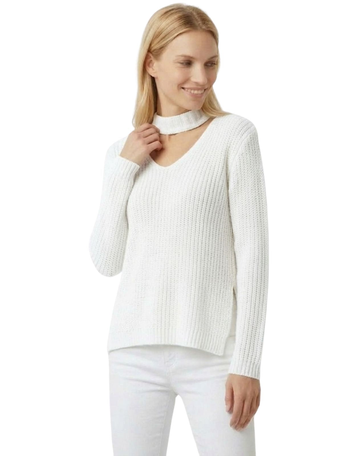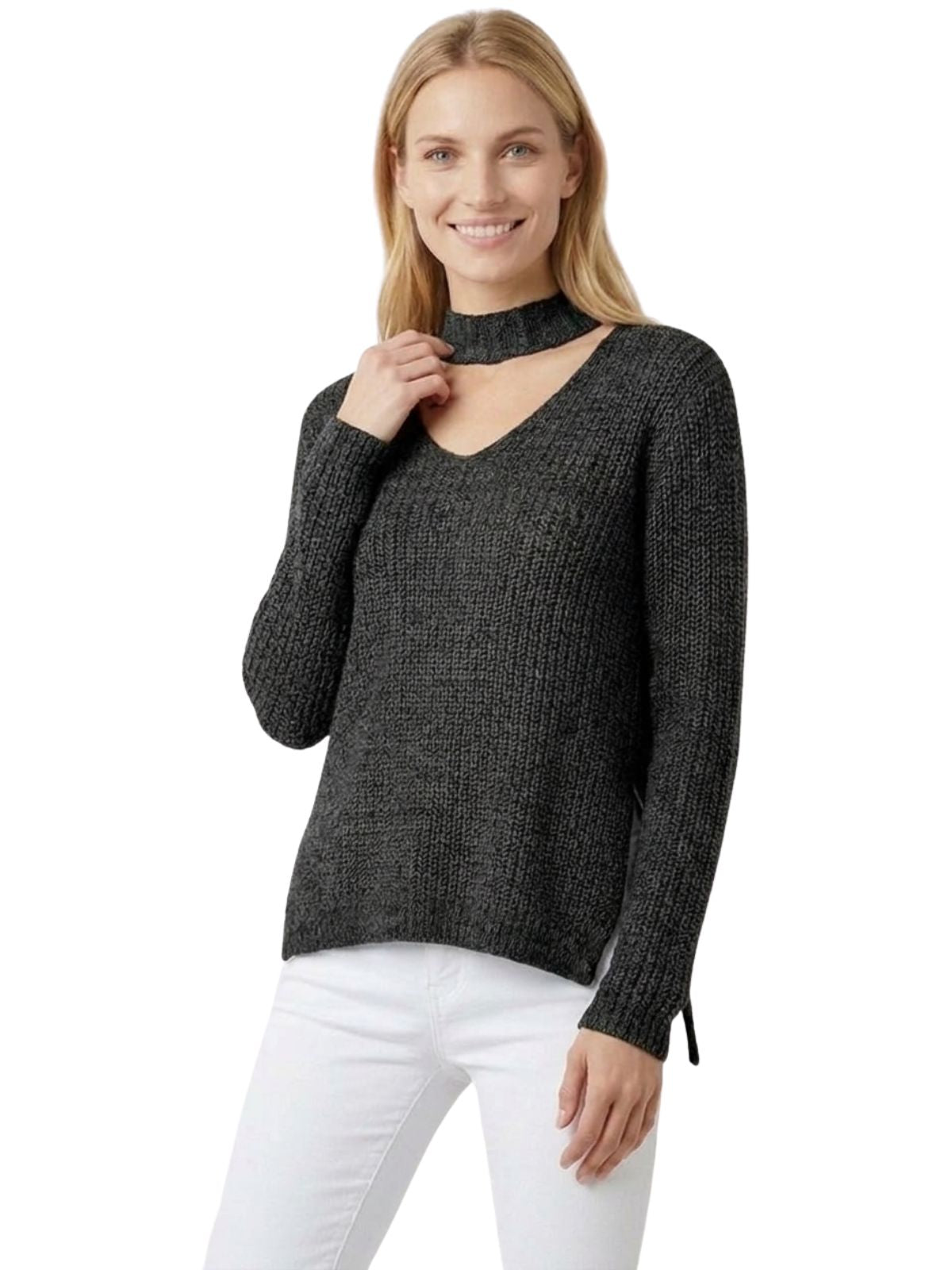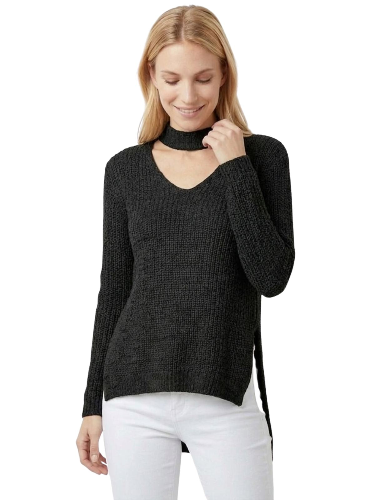 - Full Side Slits, Sexy Front Strap Detail, High-low Sweater.